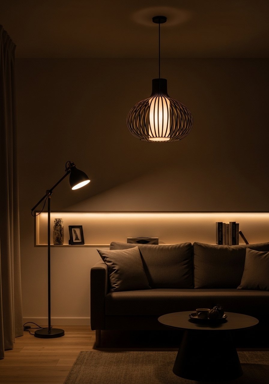 Layered lighting changed how my tiny apartment reads at night. I use a pendant, a floor lamp, and warm LED strips under shelves to create zones and depth. LED Edison bulbs and dimmers make evenings feel intentional. Mistake to avoid: relying on one overhead fixture — it flattens the space. Layered light makes rooms feel larger and cozier and lets you switch the mood without changing furniture.