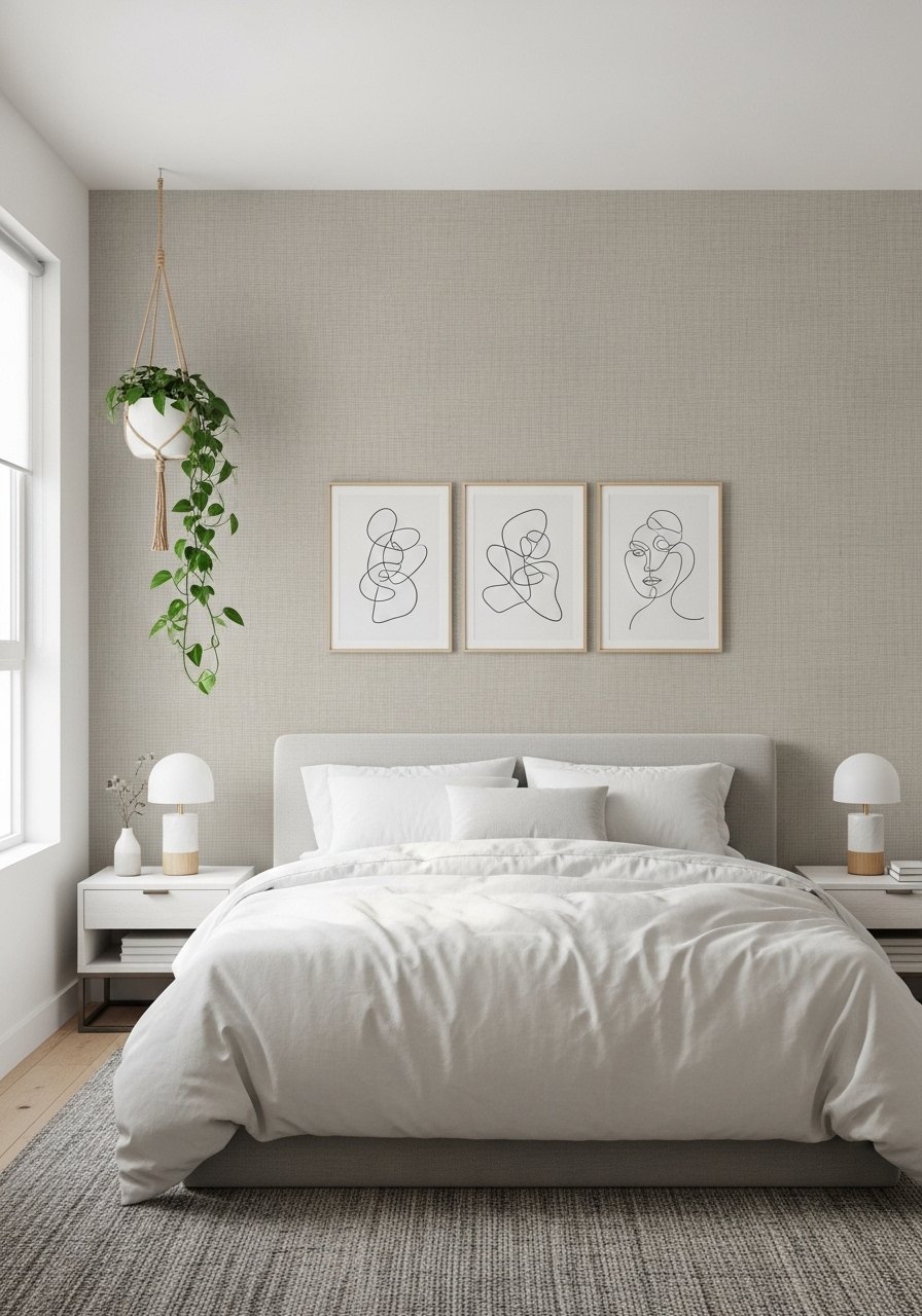 - Peel and stick wallpaper panels, neutral linen (~$20-35)