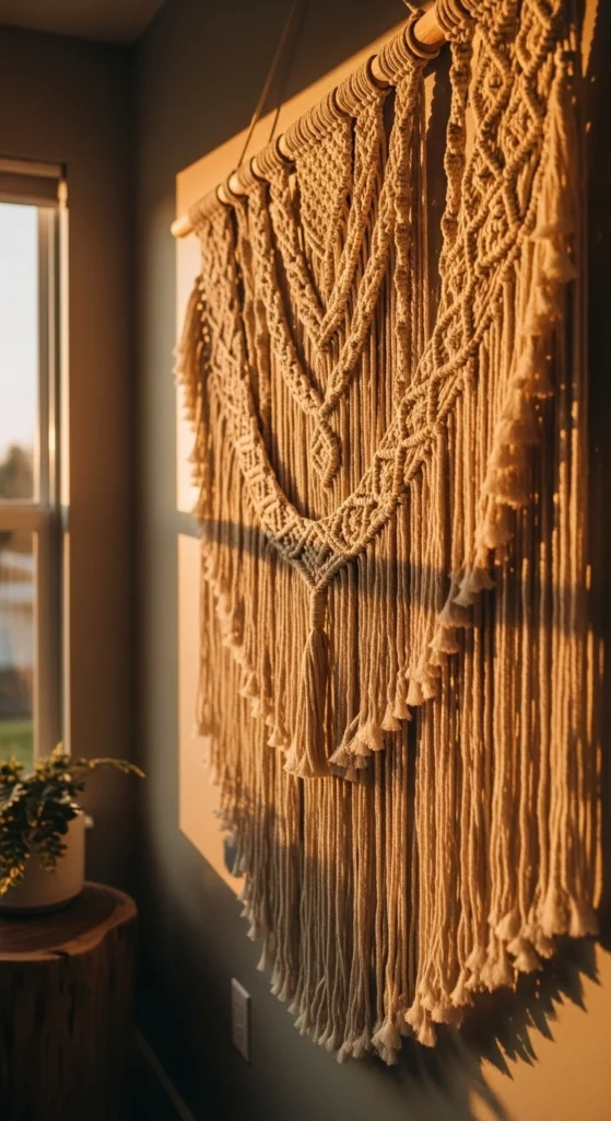 Textile wall decor adds softness and warmth. Macrame works well when art feels too flat.