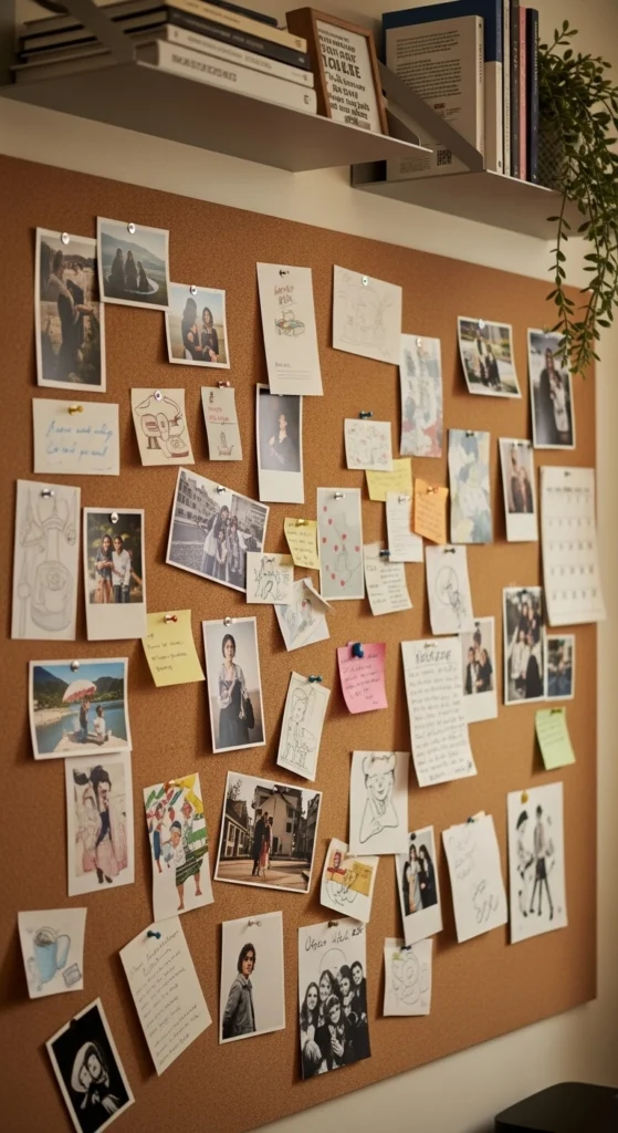 Pin photos, notes, or small art. This keeps the wall active without permanent changes.