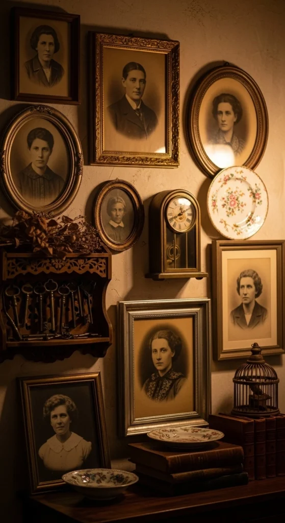 Mix old photos, maps, or illustrations. Keep colors similar so the wall feels intentional.