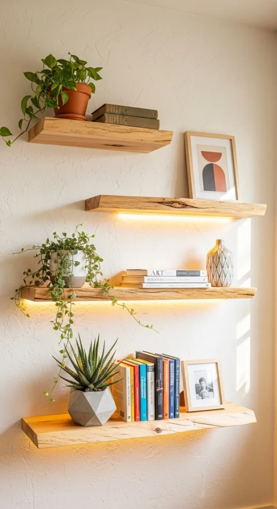 19. Wooden Wall Shelves With Decor