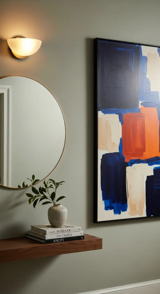 Entryways set the tone. One strong piece works better than many small ones.