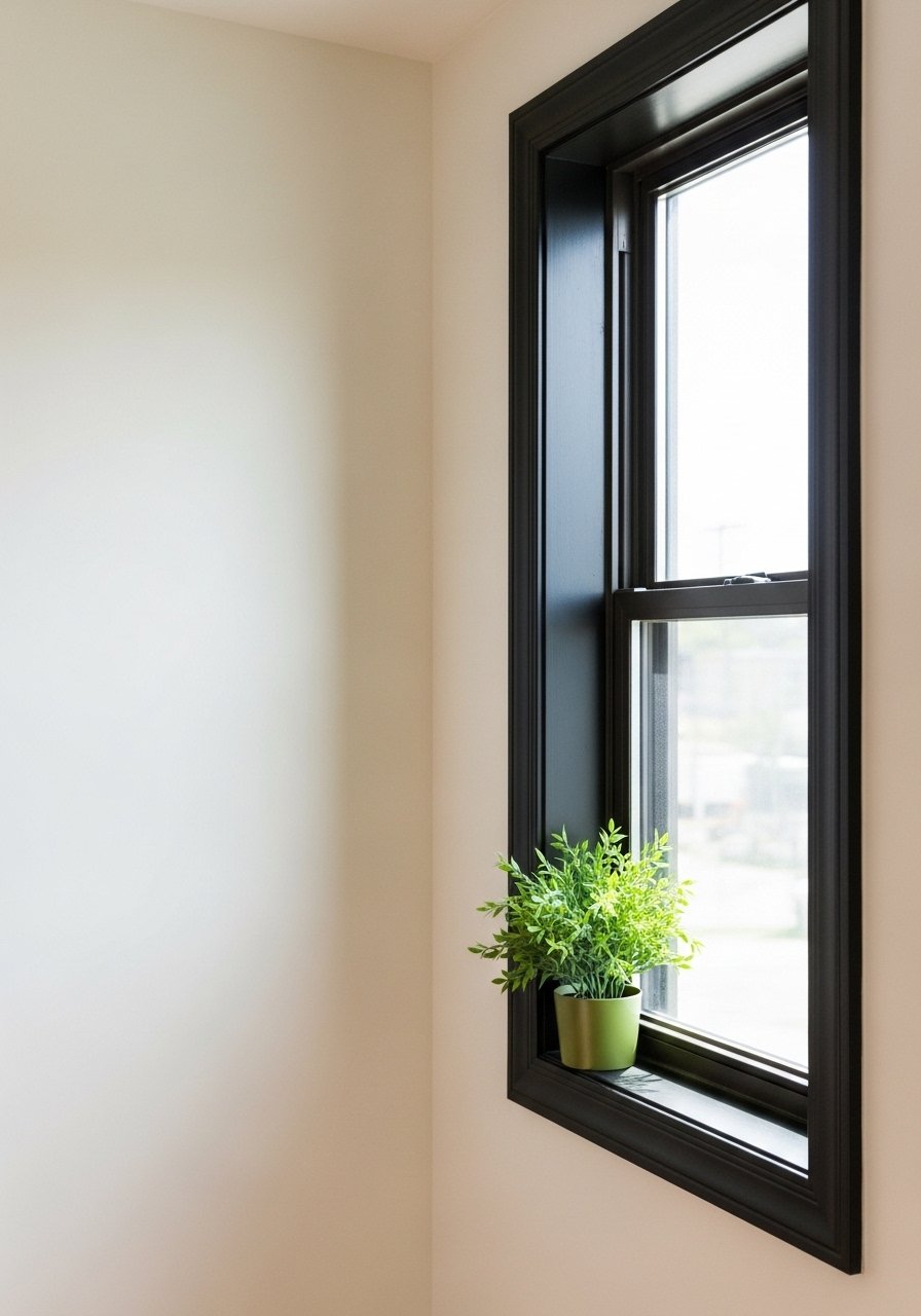 High-Contrast Black Trim to Warm White Walls