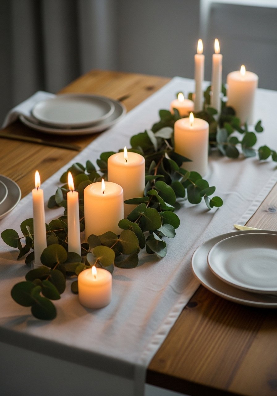 For holiday dinners I use tapered candles in brass holders and eucalyptus tucked along a linen runner. The scent and soft glow make any meal feel special. Keep decorations low so guests can see each other. Avoid using too many scented items at once — subtlety wins. This approach balances organic and elegant elements to create a warm table that’s easy to assemble and looks intentional.
