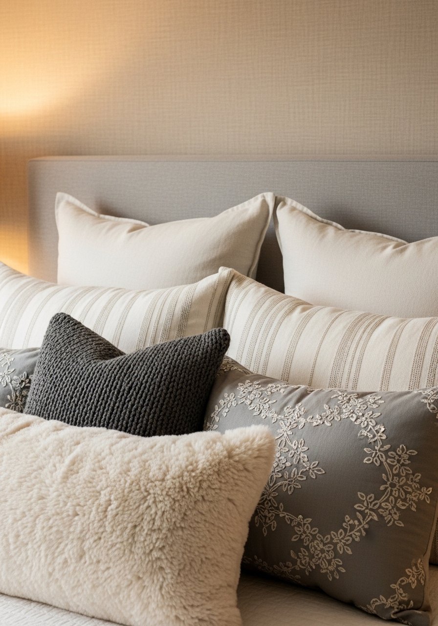 A: I aim for 5 pillows: two euros in back, two standard, and one accent. Use varying textures—velvet, linen, knit—to add warmth without overcrowding.
