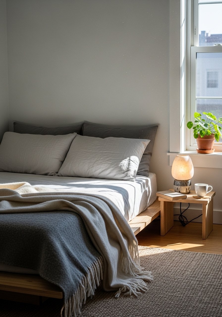 Minimalist Hygge Bedroom with Wool Layers