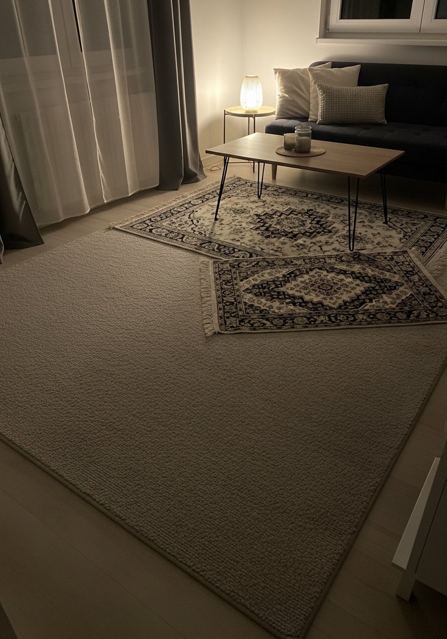 In my studio I layered a neutral base rug with a smaller patterned piece to define zones. An 8×10 jute rug anchors seating while a smaller rug adds color. Keep scale in mind: the base rug should be large enough for furniture front legs to sit on. Avoid tiny rugs that fragment the space. This trick creates depth and warmth without heavy furniture, ideal for small winter spaces.