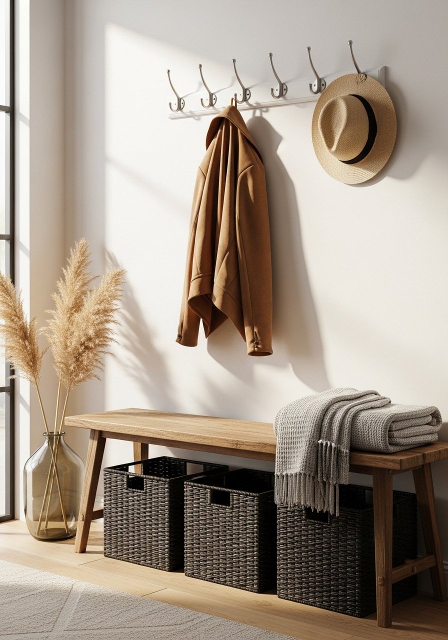 Entryway Storage with Stylish Baskets and Hooks