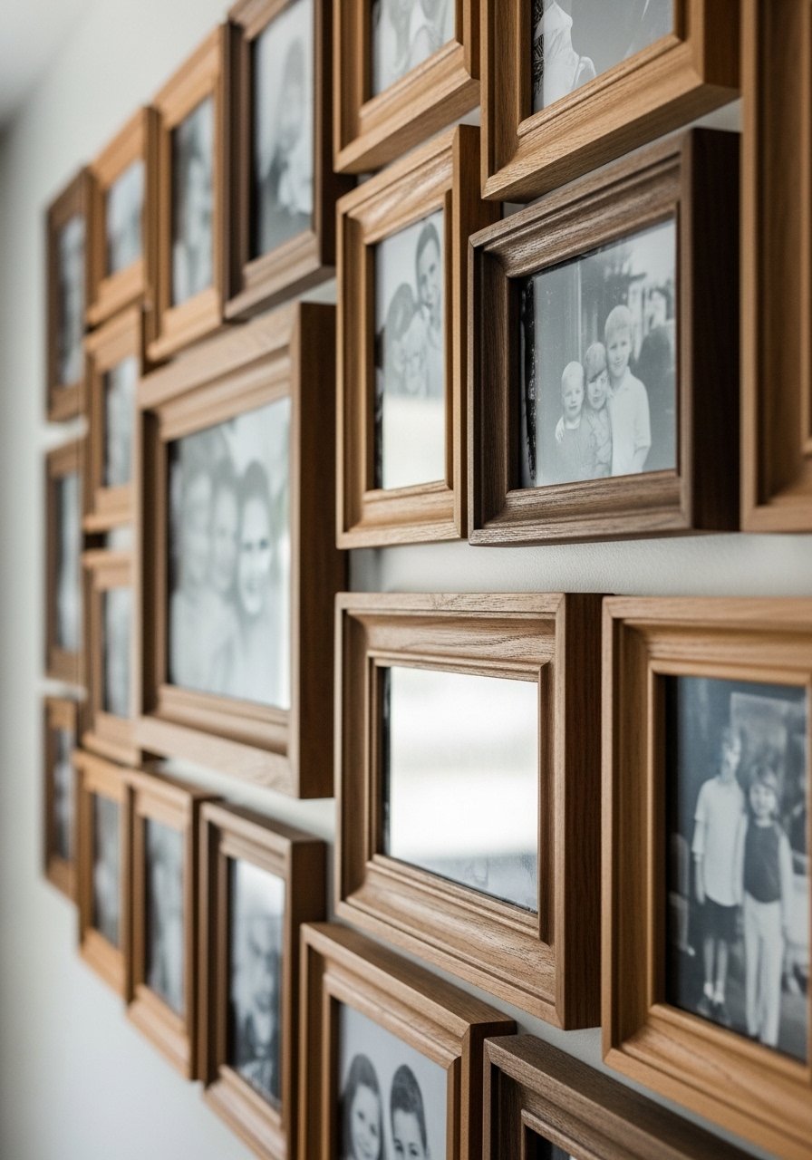 - Avoid matching every wood tone. Mix walnut, oak, and rattan. Mixed wood frames help create a curated gallery.