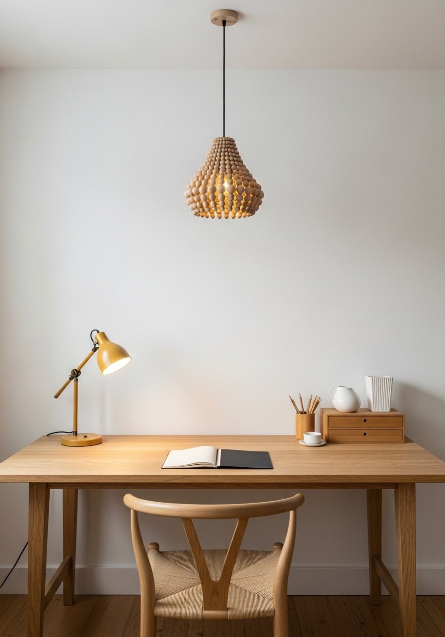 Wood-Bead Pendant and Minimalist Workspace Combo